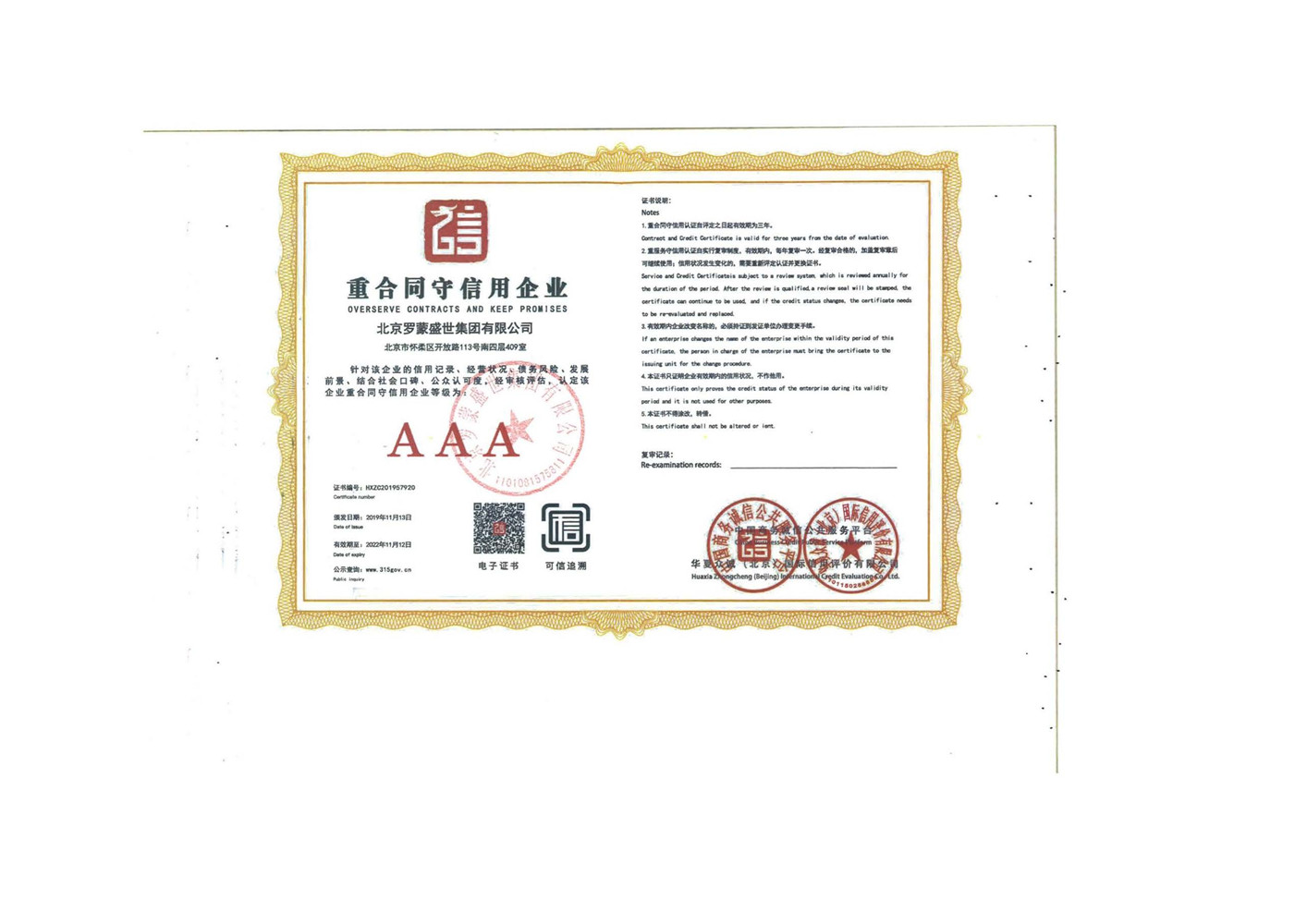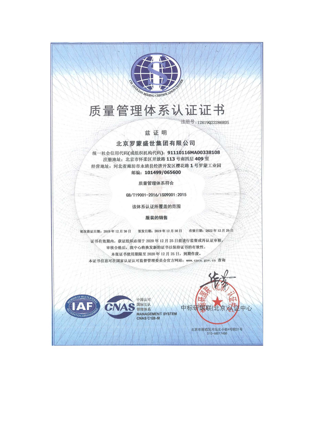 羅蒙盛世資質證書